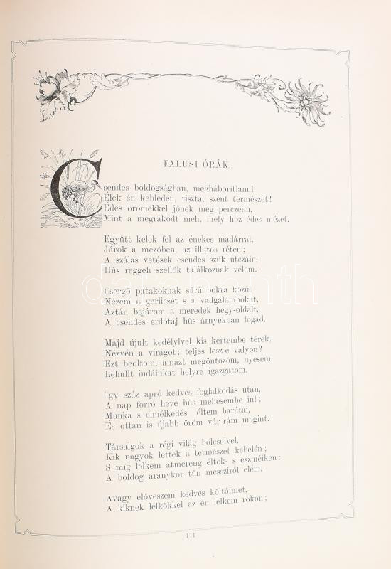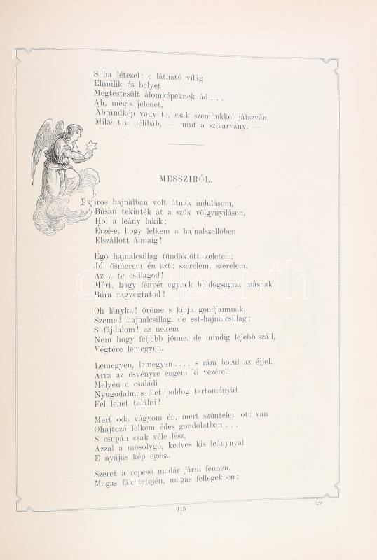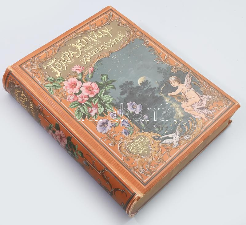 Tompa Mihály összes költeményei. Rendezték barátai Arany János, Gyulai Pál, Lévay József és Szász Károly. Bp.,én., Méhner Vilmos,(Budapesti Hírlap-ny.), 1 t. +807 p. Szövegközti illusztrációkkal. Kiadói aranyozott, festett illusztrált egészvászon-kötés, aranyozott lapélekkel, kopott borítóval, 29x23 cm.