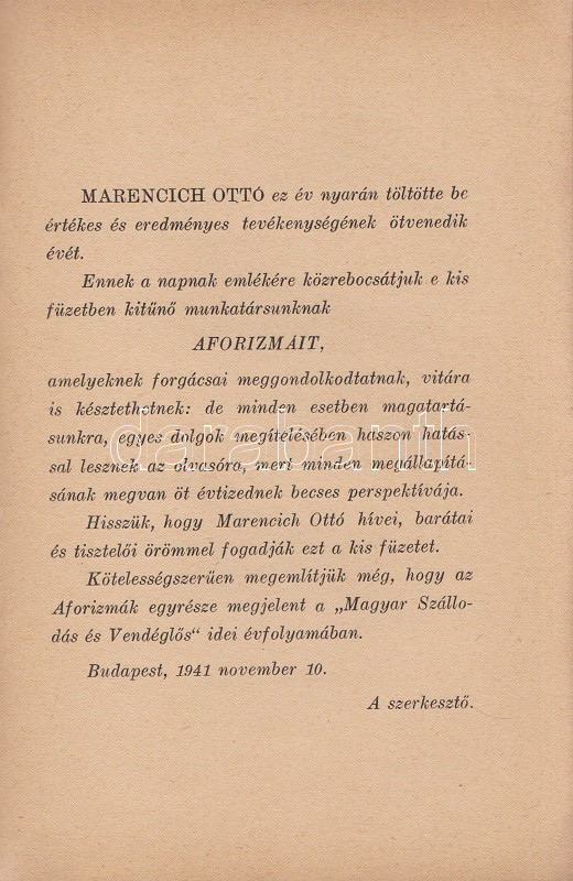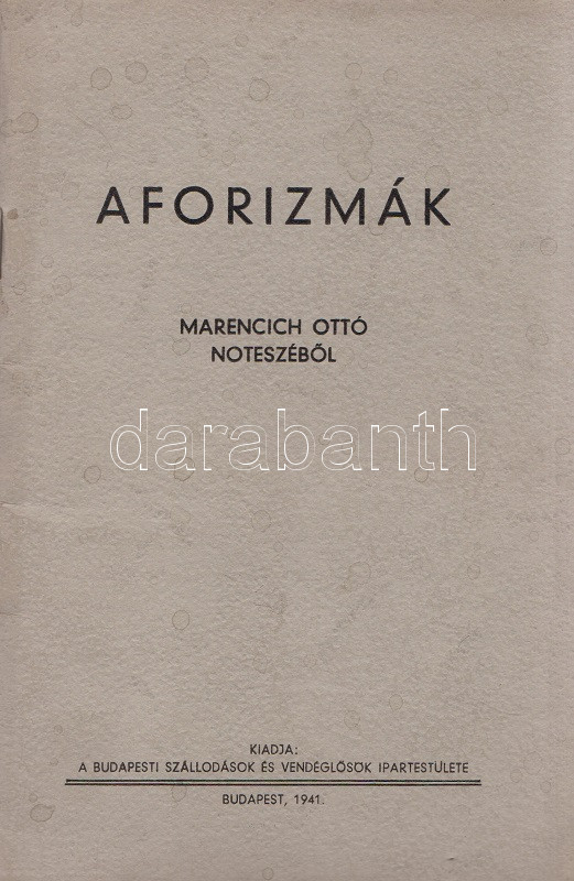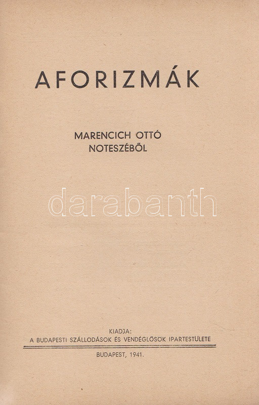Budapest, 194... https://www.darabanth.com/hu/465-Gyorsarveres/465.0/Konyvek/Konyvek-Konyha-es-kert~1000022/Marencich-Otto-Aforizmak-Marencich-Otto-noteszebolBudapest-1941-Budapesti-Szallodasok-es~II3135461