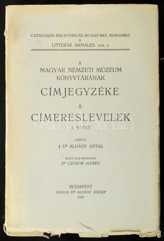 Áldásy Antal: A Magyar Nemzeti Múzeum könyvtárának címjegyzéke II. Címereslevelek 3. kötet Bp., 1937. Magyar Nemzeti Múzeum. 499 p. Kiadói papírborítóval Felvágatlan