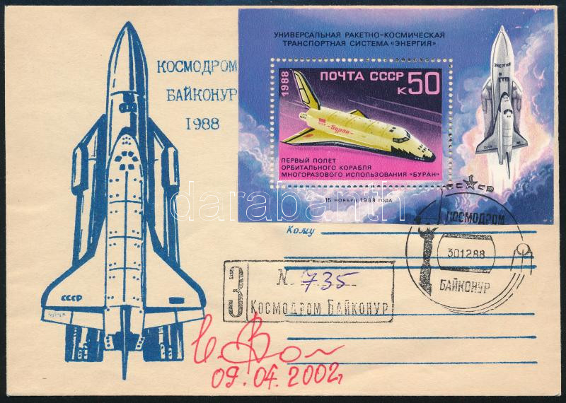 Leírás: Igor Petrovics Volk (1937-2017) űrhajós autográf aláírása alkalmi borítékon / Igor Petrich Volk (1937-2017) Soviet astronaut autograph signature on special cover