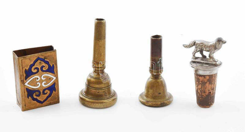 Leírás: 4 darab régi tárgy, cigarettatartó, bordugó, stb