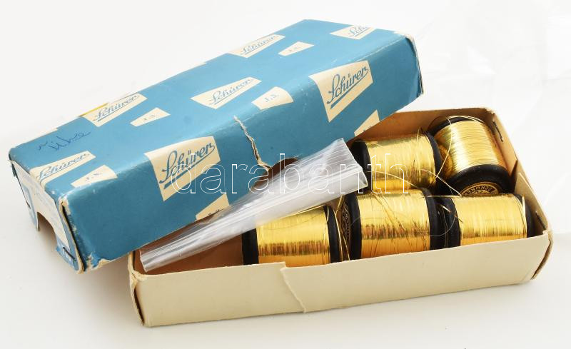 Leírás: 4 spulni Schürer arany cérna dobozában