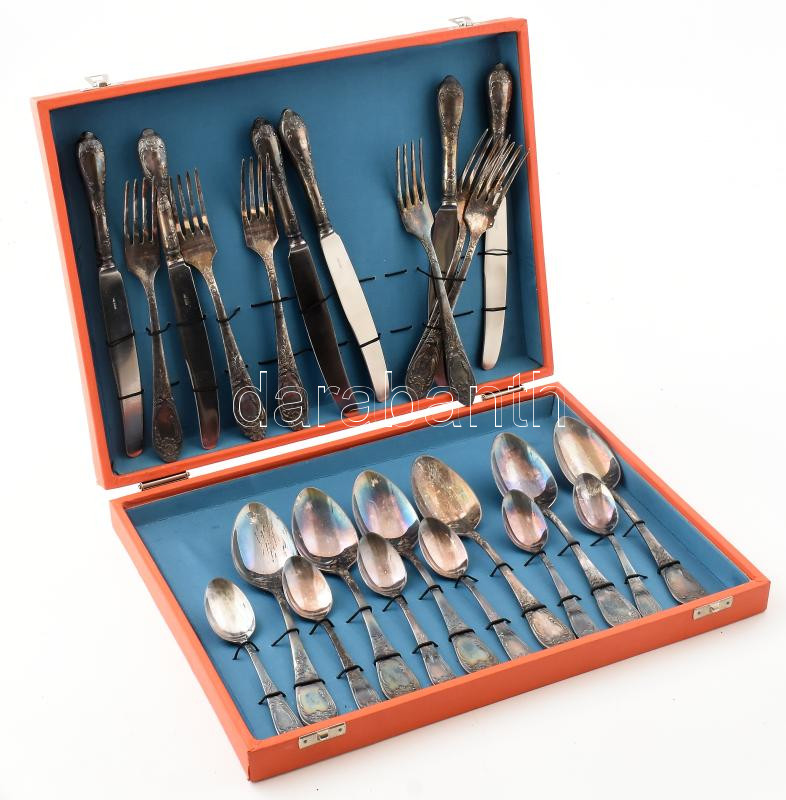 Leírás: Ezüstözött evőeszköz szett díszdobozban