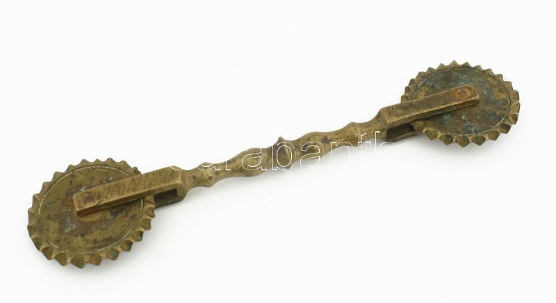 Kétvégű réz derelyevágó, h: 12,5 cm https://www.darabanth.com/hu/465-Gyorsarveres/465.0/Mutargy-papirregiseg-egyeb/Bolhapiac~500018/Ketvegu-rez-derelyevago-h-12-5-cm~II3133017