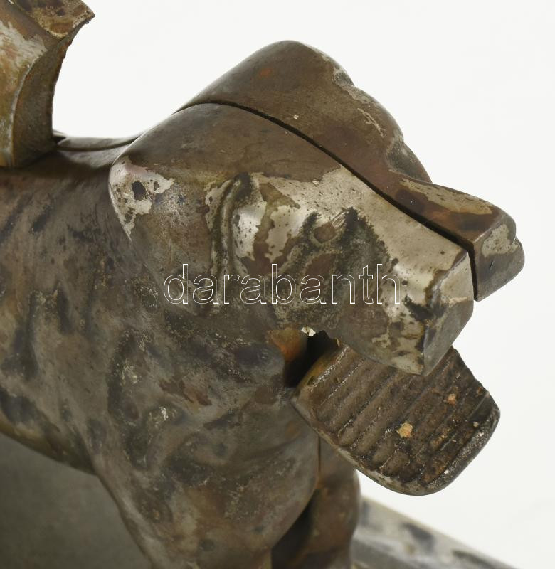 Leírás: Öntöttvas kutya figurális diótörő, talapzatán kis repedéssel, 30x15 cm