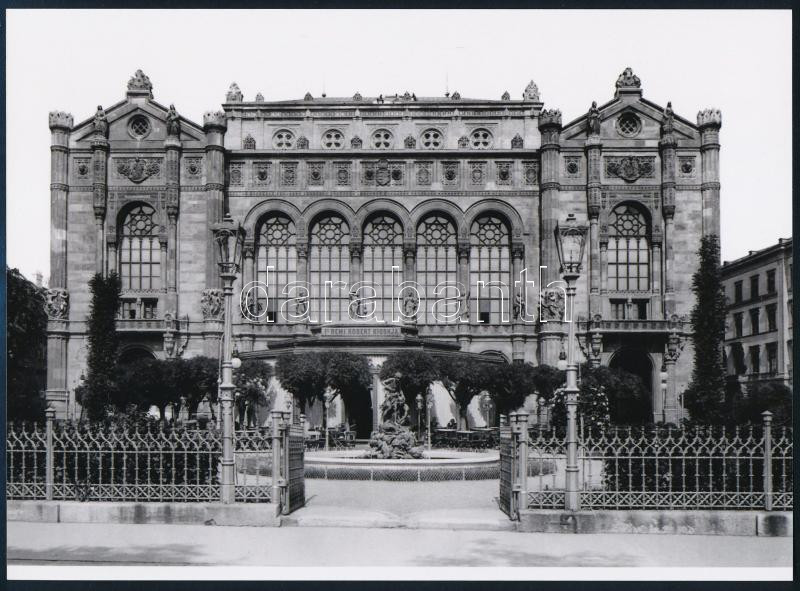 cca 1890 Budapest, Pesti Vigadó és az előtte levő kerített parkban, a felirat szerint ,,Rémi Róbert Kioskja", 1 db modern nagyítás, jelzés nélkül, 15x21 cm