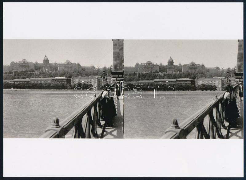Leírás: cca 1905 Budapest, sztereo felvétel a Lánchídról fényképezve a királyi palotát és a budai Duna partot, 1 db modern nagyítás jelzés nélkül, 15x21 cm