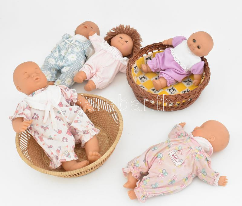Leírás: 5 darab baba, kosarakban, közte Zapf, Lissi, m: 31 cm alatt
