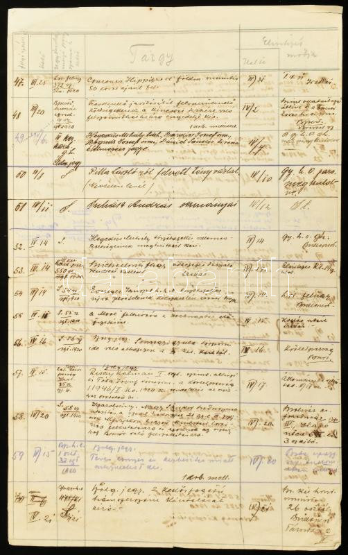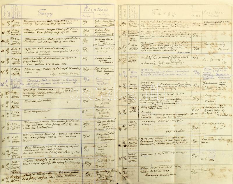 Leírás: 1920 Budapesti Huszár Osztály Parancsnokság kimutatása huszárok ügyeinek tárgyalásairól, elintézéséről.