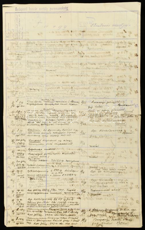 1920 Budapesti Huszár Osztály Parancsnokság kimutatása huszárok ügyein... https://www.darabanth.com/hu/465-Gyorsarveres/465.0/Mutargy-papirregiseg-egyeb/Militaria~1000008/1920-Budapesti-Huszar-Osztaly-Parancsnoksag-kimutatasa-huszarok-ugyeinek-targyalasairol-~II3139189