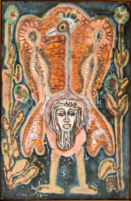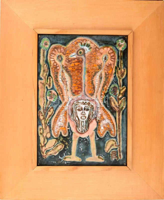 Leírás: Ismeretlen alkotó, esetleg Fajka János?: Szürrealista portré. Keretbe applikálva, 22x15 cm