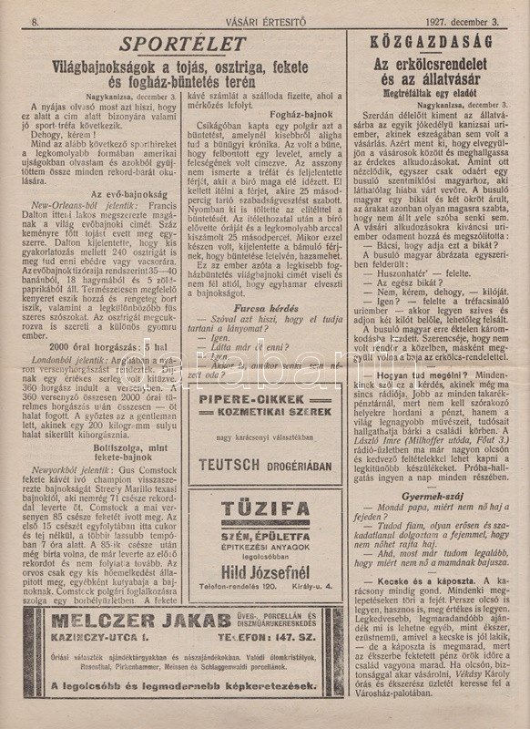 1927 Vásári értesÃtÅ‘. Elkövette: Barbarits Lajos. IV. Évfolyam, páratl...