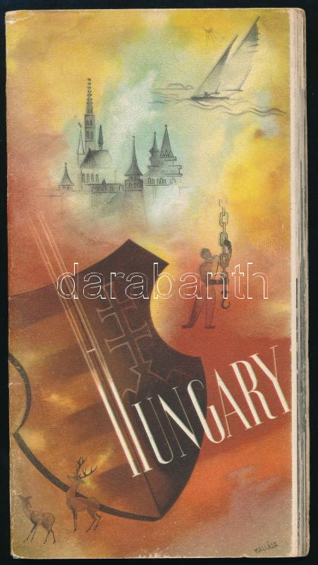 1948 Hungary, az IBUSZ Magyarországot bemutató, angol nyelvű ismertető prospektusa, fekete-fehér fotókkal, a borítón Mallász Gitta grafikájával. Bp., Klösz-ny., a borítón minimális sérüléssel.