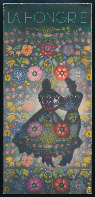 cca 1935 La Hongrie, Magyarországot bemutató, francia nyelvű idegenforgalmi prospektus, fekete-fehér és színes illusztrációkkal, a borítón Kling György grafikájával. Bp., Stádium-ny., kihajtva: 41,5x22,5 cm