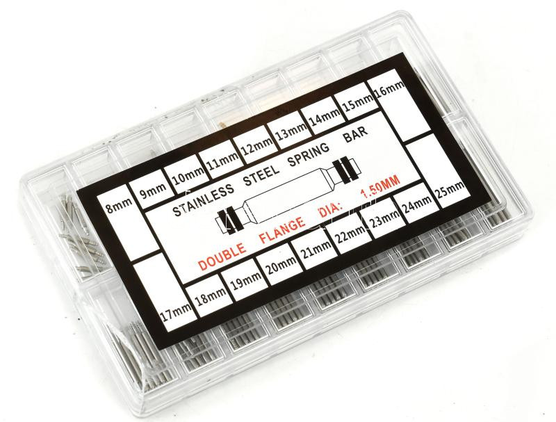 Leírás: cca 100 db óraszíj rugó, tartóban