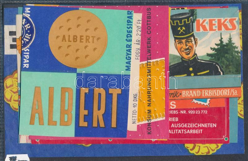 Leírás: 10 db kekszek és hasonló áruk csomagolópapírjai a retró korszakból