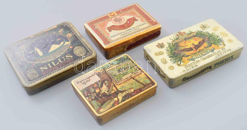 Leírás: 4 db háború előtti fém szivarkás, cigarettás doboz jó állapotban
