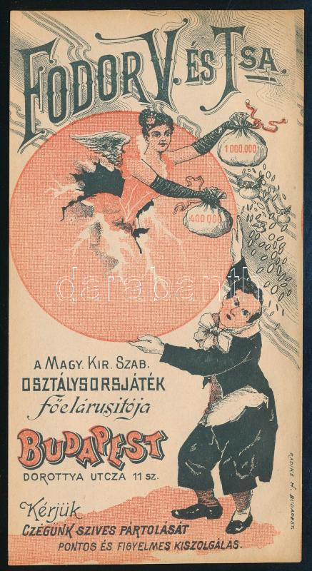Fodor V. és Társa osztálysorsjáték főelárusítója számolócédula https://www.darabanth.com/hu/465-Gyorsarveres/465.0/Mutargy-papirregiseg-egyeb/Reklam~1000001/Fodor-V-es-Tarsa-osztalysorsjatek-foelarusitoja-szamolocedula~II3133125