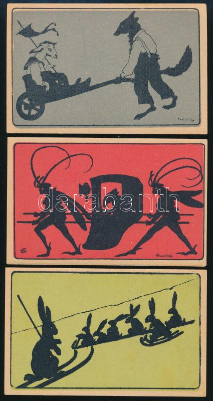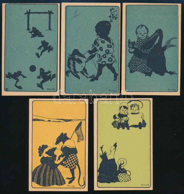 Leírás: Kerpel Kézfinomító - Kerpel Gyógytár reklámlapok, Faragó Géza (1877-1928) grafikáival, 10,5×6,5 cm