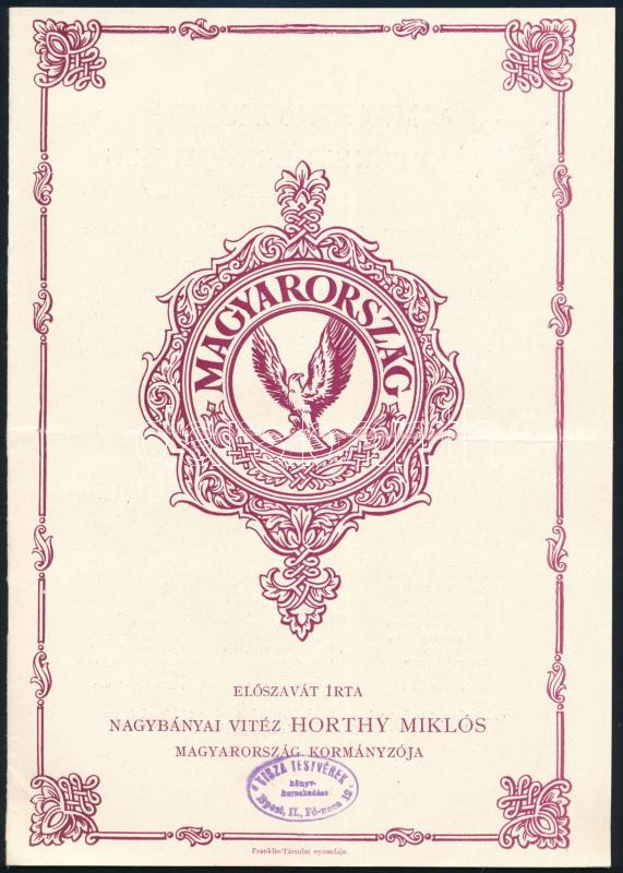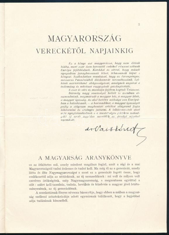 Leírás: cca 1930 Magyarország Vereckétől napjainkig c. könyvsorozat . Képes reklám nyomtatványa. 11 p.