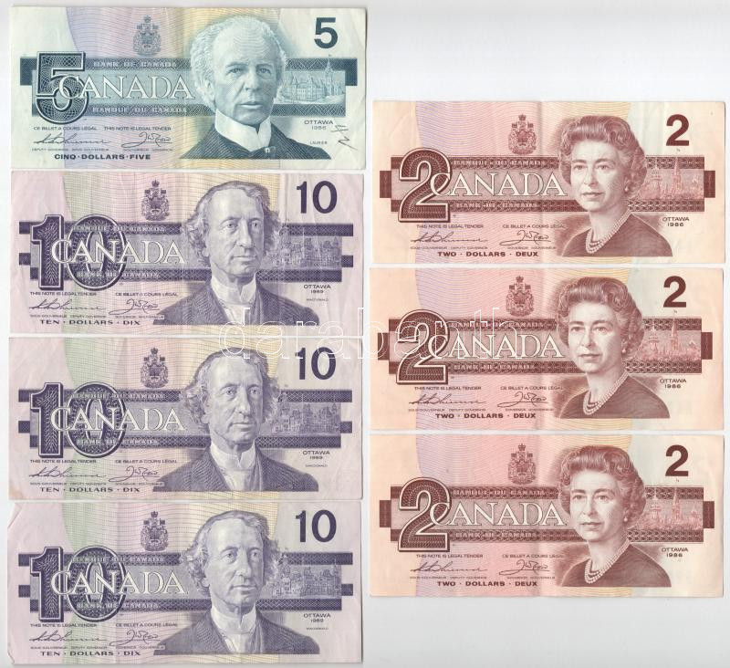 Leírás: Kanada 1986. 2$ (3x) + 5$ + 1989. 10$ (3x) T:F