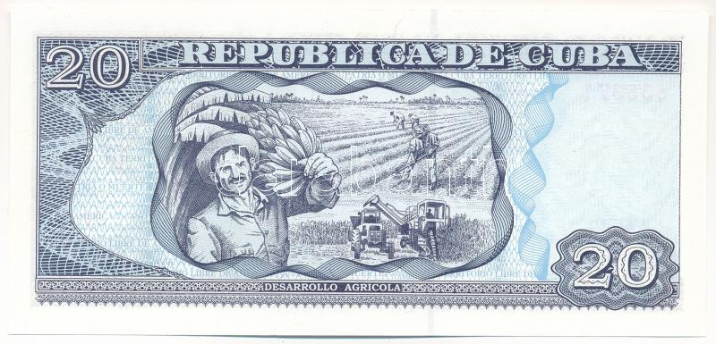 Krause P#122a https://www.darabanth.com/hu/465-Gyorsarveres/465.0/Numizmatika/Kulfoldi-bankjegyek~2500016/Kuba-2004-20P-TUNC-Cuba-2004-20-Pesos-CUNC-Krause-P23122a~II3131385