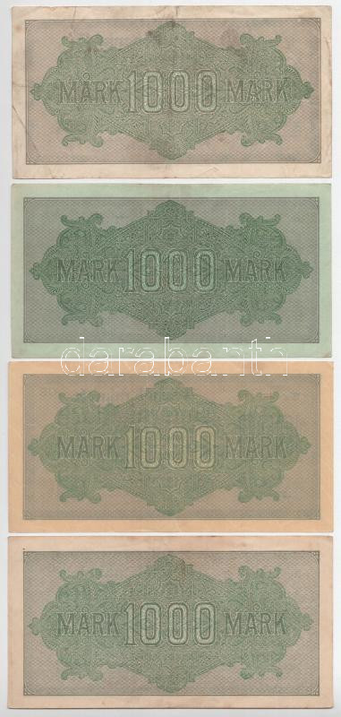 Németország / Weimari Köztársaság 1922. 1000M (4db) különféle színű sorszámok és bankjegypapírok T:F,VG közte erős papír