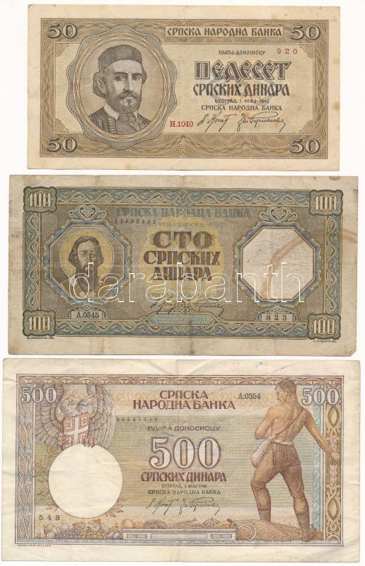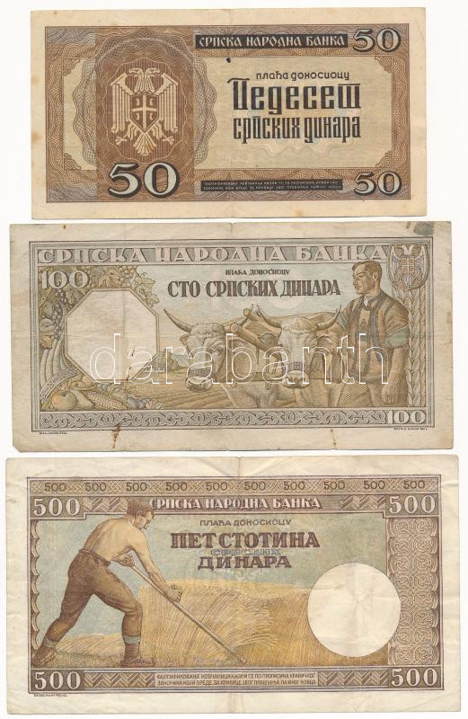 ... https://www.darabanth.com/hu/465-Gyorsarveres/465.0/Numizmatika/Kulfoldi-bankjegyek~2500016/Szerbia-Nemet-megszallas-1942-50D-plus-1943-100D-plus-1942-500D-T-F-VGSerbia-German-Occupation~II3137156