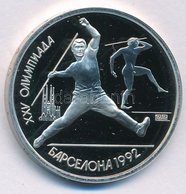 Leírás: Szovjetunió 1991. 1R Cu-Ni "Nyári Olimpia 1992, Barcelona - Gerelyhajítás" forgalomba nem került emlékkiadás T:PP Soviet Union 1991. 1 Ruble Cu-Ni "Summer Olympics 1992, Barcelona - Javelin" non-circulating commemorative coin C:PP Krause Y#290