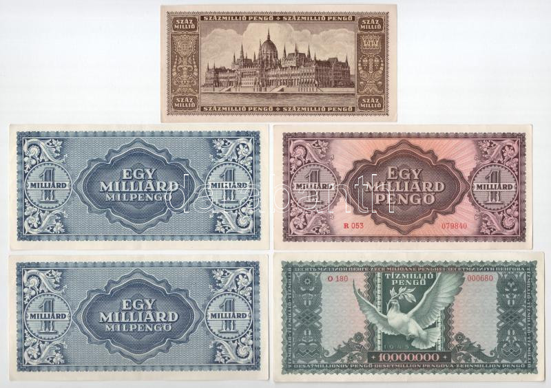 Leírás: 1946. 10.000.000P - 1.000.000.000MP (5x) T:VF-F szép papír