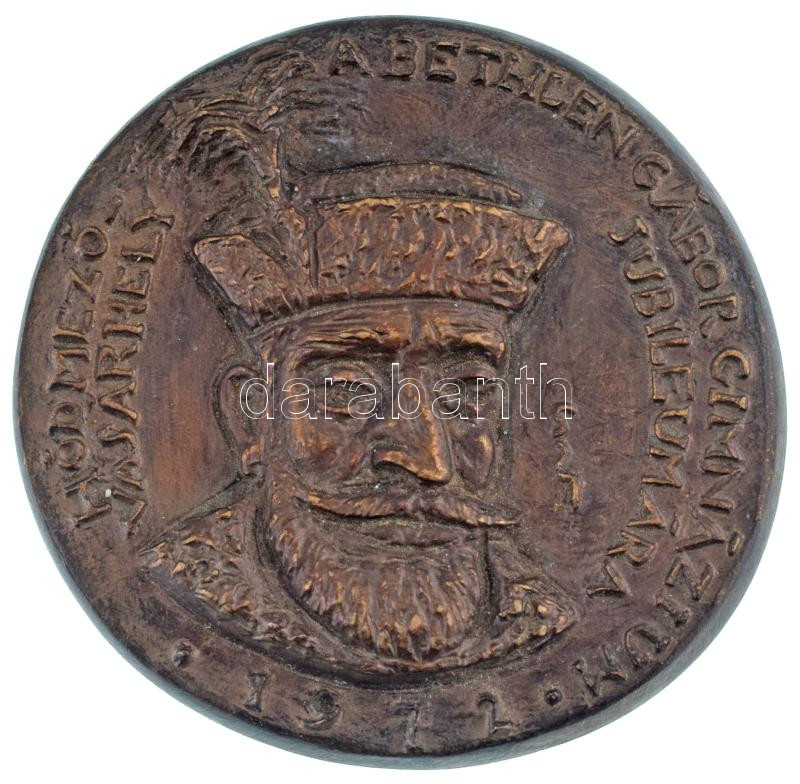 Szabó Iván (1913-1998) 1972. "Hódmezővásárhely - A Bethlen Gábor Gimnázium jubileumára." egyoldalas, öntött bronz emlékplakett, eredeti sérült dísztokban (~94-97mm) T:2