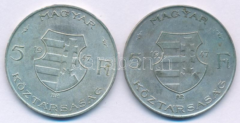 Leírás: 1947. 5Ft Ag "Kossuth" (2x) T:VF,F patina Adamo F8.1