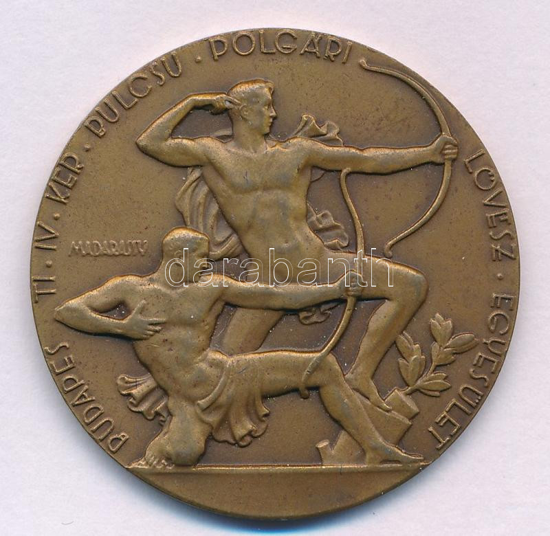 Reményi József (1887-1977) 1926. "Budapesti Polgári Lövész Egyesület / Hazádat és királyodat védeni tanuld itt" bronz díjérem "BERÁN N BPEST" gyártói jelzéssel (40mm) T:XF