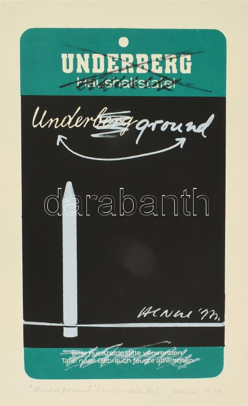 Hencze Tamás (1938-2018): Underground, 1971. Szitanyomat, papír, jelzett. Számozott: 20/3. 39×22,5 cm. Lapszéli nagyobb és kisebb szakadással. / serigraphy on paper, signed, numbered: 20/3