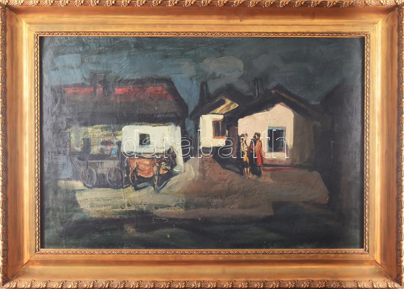 Bótos Sándor (1921 - 1997): Falusi utca. Olaj, vászon, jelzés nélkül. ... https://www.darabanth.com/hu/466-Gyorsarveres/466.0/Gellert-Szallo-festmenyeinek-arverese/Gellert-Szallo-festmenyeinek-arverese~24/BotosC2A0Sandor-1921-1997Falusi-utcaOlaj-vaszon-jelzes-nelkul50x-75-cm-keretezett-~II3136553