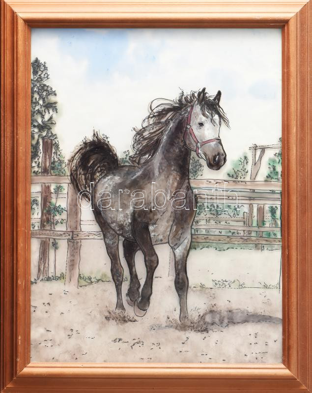 Királyné Török Enikő: Poroszkáló. üvegfesték, üveg, 42x32 cm, keretben... https://www.darabanth.com/hu/466-Gyorsarveres/466.0/Gellert-Szallo-festmenyeinek-arverese/Gellert-Szallo-festmenyeinek-arverese~24/Kiralyne-Torok-Eniko-Poroszkalo-uvegfestek-uveg-42x32-cm-keretben-keret-jo-allapot~II3136290