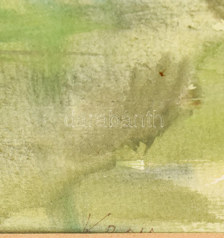 Leírás: Kron Zsuzsa (1951-): Holtág. Akvarell, papír, Jjl.: Kron. 32x47 cm, keretben, üvegezett, jó állapotú.