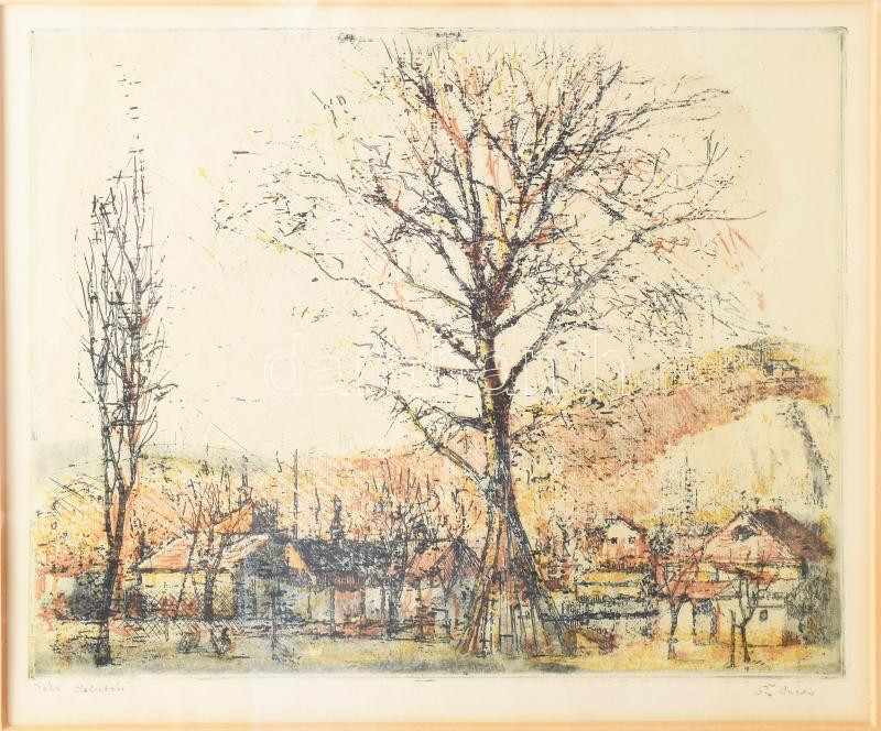Ősz Dénes (1915 - 1980): Téli délután. Színezett rézkarc, papír, jjl.:... https://www.darabanth.com/hu/466-Gyorsarveres/466.0/Gellert-Szallo-festmenyeinek-arverese/Gellert-Szallo-festmenyeinek-arverese~24/Osz-Denes-1915-1980-Teli-delutan-Szinezett-rezkarc-papir-jjl-Osz-Denes-29x36-5-~II3135833