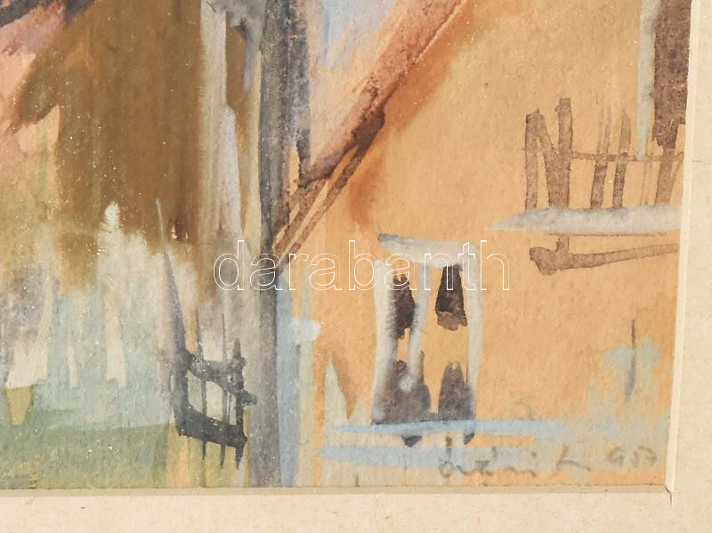 Óvári László (1926 - 1988): Városkép. Akvarell, papír, jjl.: Óvári L. ... https://www.darabanth.com/hu/466-Gyorsarveres/466.0/Gellert-Szallo-festmenyeinek-arverese/Gellert-Szallo-festmenyeinek-arverese~24/Ovari-Laszlo-1926-1988-Varoskep-Akvarell-papir-jjl-Ovari-L-27-5x39-cm-keretben-~II3135680