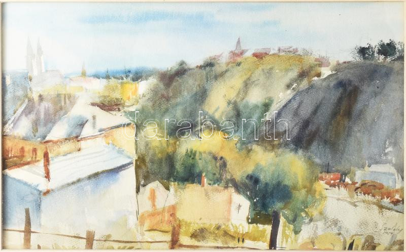 Szalóky Sándor (1921-1978): Háztetők. Akvarell, papír, jjl: Szalóky 19... https://www.darabanth.com/hu/466-Gyorsarveres/466.0/Gellert-Szallo-festmenyeinek-arverese/Gellert-Szallo-festmenyeinek-arverese~24/Szaloky-Sandor-1921-1978-HaztetokAkvarell-papir-jjl-Szaloky-1959-28-5x46-cm-keretben~II3136148