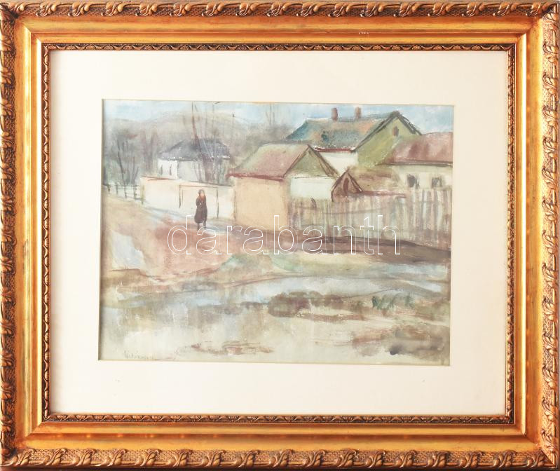 Leírás: Szilvássy Margit (1898-1977): Utcarészlet. Akvarell, pasztell, papír, jbl.: Szilvássy. 28x38 cm, keretben, üvegezett, jó állapotú.