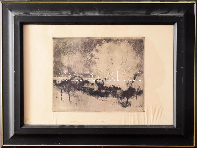 Leírás: Szőnyi István (1894-1960): Virágzó fa. Rézkarc, papír, jjl.: Szőnyi István; jbl.: Virágzó fa. 20x24 cm, keretezett, hordozó kissé foltos, üvegezett, jó állapotú.