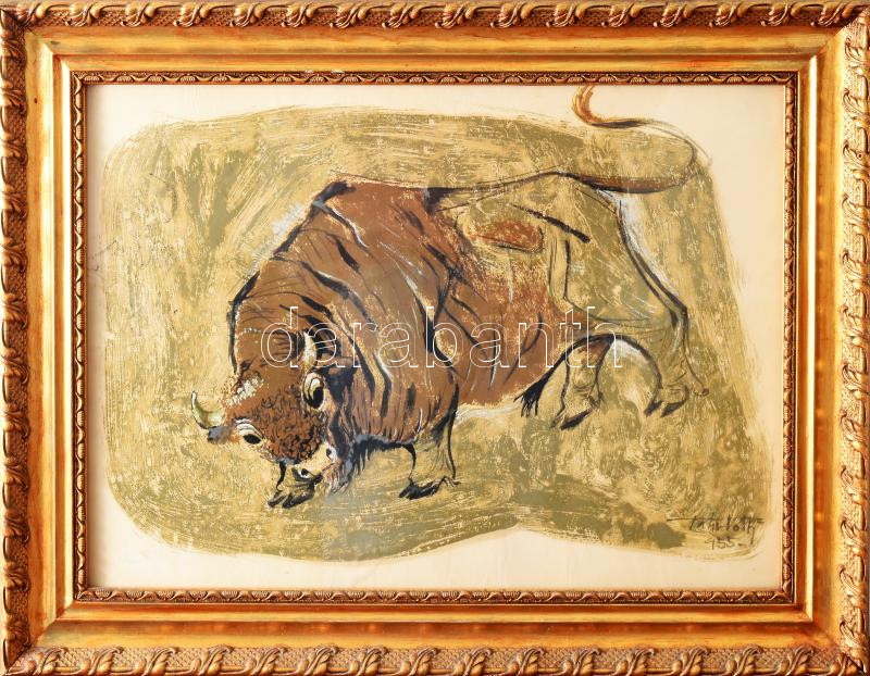 Tahi-Tóth Nándor (1912-1978): Bika. Monotípia, tus, papír, jjl.: Tahi-... https://www.darabanth.com/hu/466-Gyorsarveres/466.0/Gellert-Szallo-festmenyeinek-arverese/Gellert-Szallo-festmenyeinek-arverese~24/Tahi-Toth-Nandor-1912-1978-Bika-Monotipia-tus-papir-jjl-Tahi-Toth-955-32x44-cm-keret~II3135894