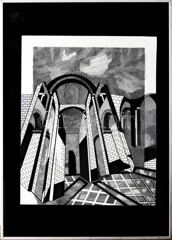 Vásárhelyi Antal (1950-): Boltívek II. Filc, akril, tus, papír, jjf.: ... https://www.darabanth.com/hu/466-Gyorsarveres/466.0/Gellert-Szallo-festmenyeinek-arverese/Gellert-Szallo-festmenyeinek-arverese~24/Vasarhelyi-Antal-1950-Boltivek-II-Filc-akril-tus-papir-jjf-Antal-Vasarhelyi-1993-5~II3136024