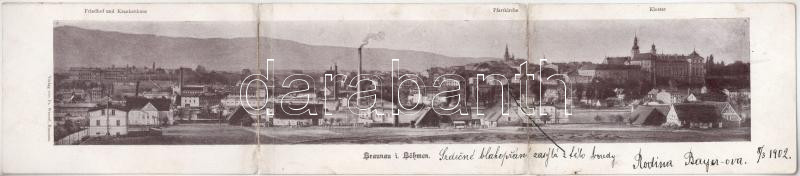 Leírás: Broumov, Braunau i. Böhmen; Friedhof, Krankenhaus, Pfarrkirche, Kloster / cemetery, hospital, church, cloister - 3-tiled folding panoramacard (r)