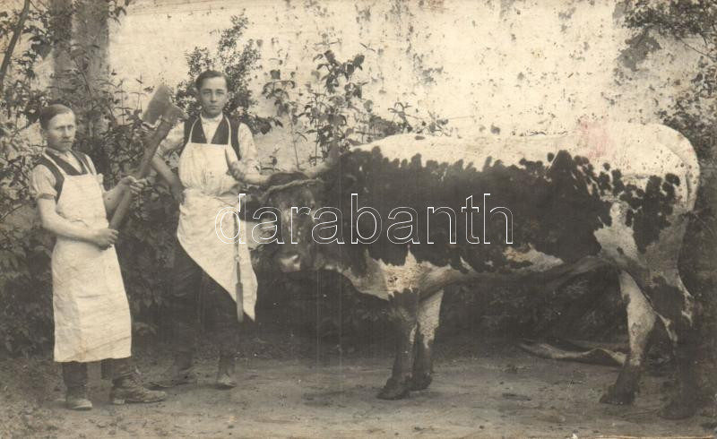 Mészároslegények / Hungarian butchers, photo (fl) https://www.darabanth.com/hu/466-Gyorsarveres/466.0/Kepeslapok/Egyenruhasok-foglalkozasok~2000023/Meszaroslegenyek-Hungarian-butchers-photo-fl~II1048309
