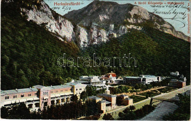 1904 Herkulesfürdő, Baile Herculane; fürdő központja / spa https://www.darabanth.com/hu/466-Gyorsarveres/466.0/Kepeslapok/Erdely~2000006/1904-Herkulesfurdo-Baile-Herculane-furdo-kozpontja-spa~II3144597