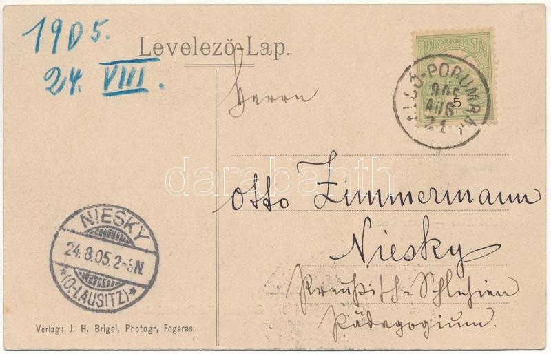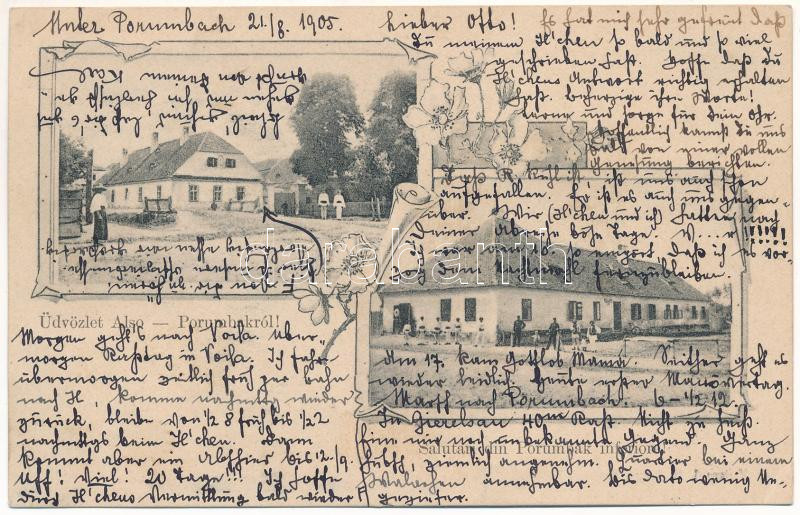 1905 Alsóporumbák, Unter-Bornbach, Porumbacu de Jos (Szeben, Sibiu); posta és községháza. J.H. Brigel Photogr. / post office, town hall. Art Nouveau, floral (EK)