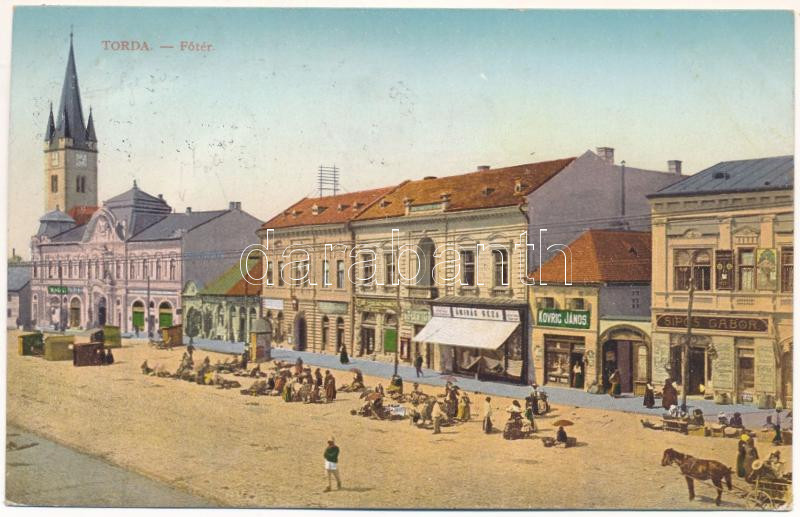 1913 Torda, Turda; Fő tér, piac, Sipos Gábor, Kovrig János, Botár Imre... https://www.darabanth.com/hu/466-Gyorsarveres/466.0/Kepeslapok/Erdely~2000006/1913-Torda-Turda-Fo-ter-piac-Sipos-Gabor-Kovrig-Janos-Botar-Imre-es-Amiras-Geza-uzlet~II3144662
