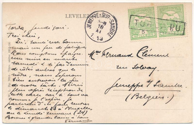 Leírás: 1913 Torda, Turda; Fő tér, piac, Sipos Gábor, Kovrig János, Botár Imre és Amirás Géza üzlete. W.L. Bp. 7010. 1911-14. / main square, shops, market